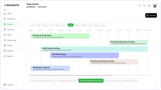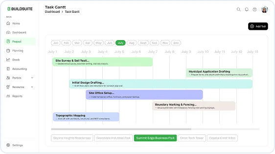 BuildSuite is purpose-built for construction. Unlike task-based tools, it supports BOQ-based planning, site updates, labour and material tracking, and project-wise financial visibility with workflows designed for engineers, supervisors, and operations teams.
