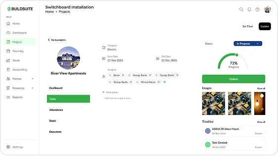 Yes. BuildSuite gives you real-time visibility into project budgets, expenses, labour costs, and material consumption helping you track profitability at every stage.