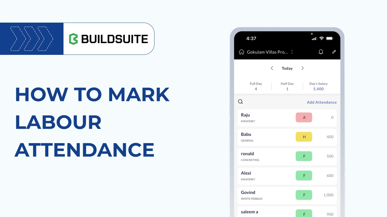Learn how to mark labour attendance including full time, OT, half day and absent from site.