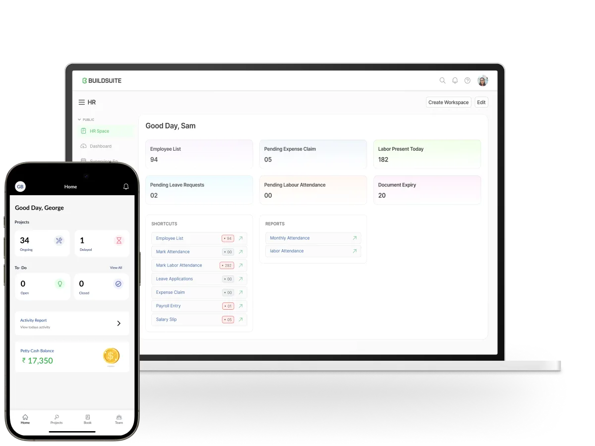 Definitely. BuildSuite HR is fully mobile-responsive and supports Android/iOS apps, enabling site teams to mark attendance, upload documents, or view reports from anywhere.