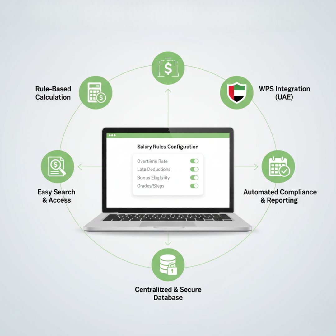 Stay 100% UAE-compliant. Instantly create WPS/SIF files ready for bank upload, ensuring salaries go out on time, every time.
